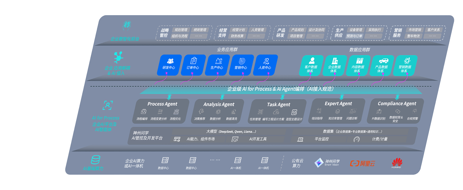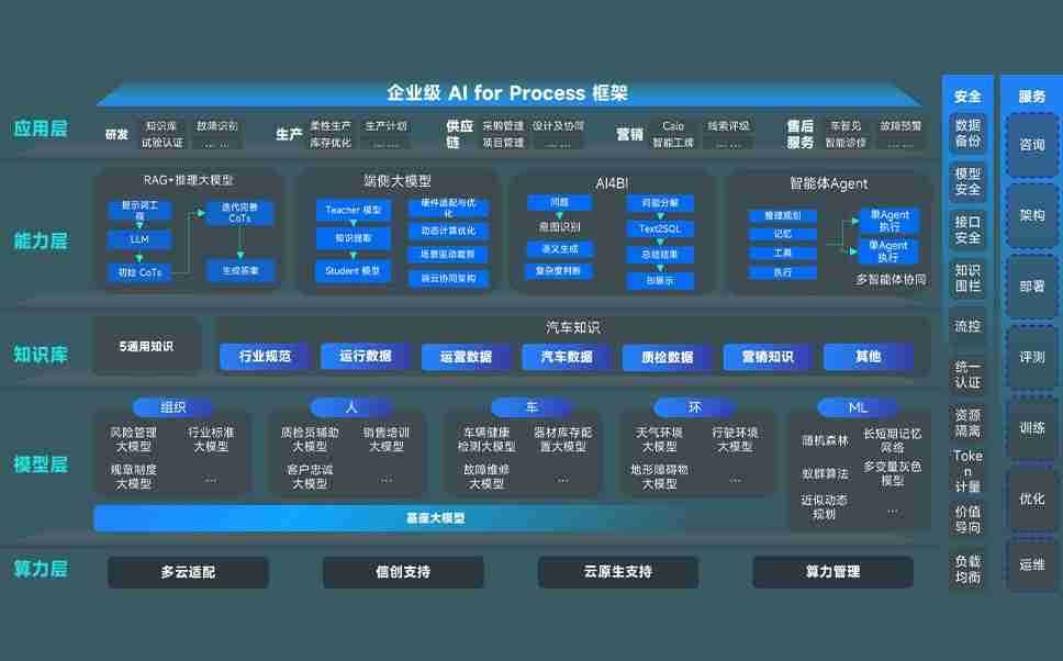 AG尊龙凯时问学智车解决方案是一套基于AI技术的汽车行业智能化系统,,覆盖从底层算力到顶层AI应用的全栈方案。。。。方案由算力层、、模型层和应用层组成:算力层,,,方案支持多种一体机配置,,,具备云端灵活部署、、、多云适配以及动态优化计算资源的能力;模型层,,AG尊龙凯时问学平台版提供了企业级AI应用一站式构建与管理平台,,,支持基于后训练强化技术的汽车企业专属模型的训练、、评测和运营;应用层,,,AG尊龙凯时问学DeepSeek版提供包括超级员工、、、、智能招采、、智能营销、、、智能客服、、、AI for BI等一系列解决方案,,,,可助力汽车行业实现数字化转型,,,,让管理更智能、、响应更敏捷。。。